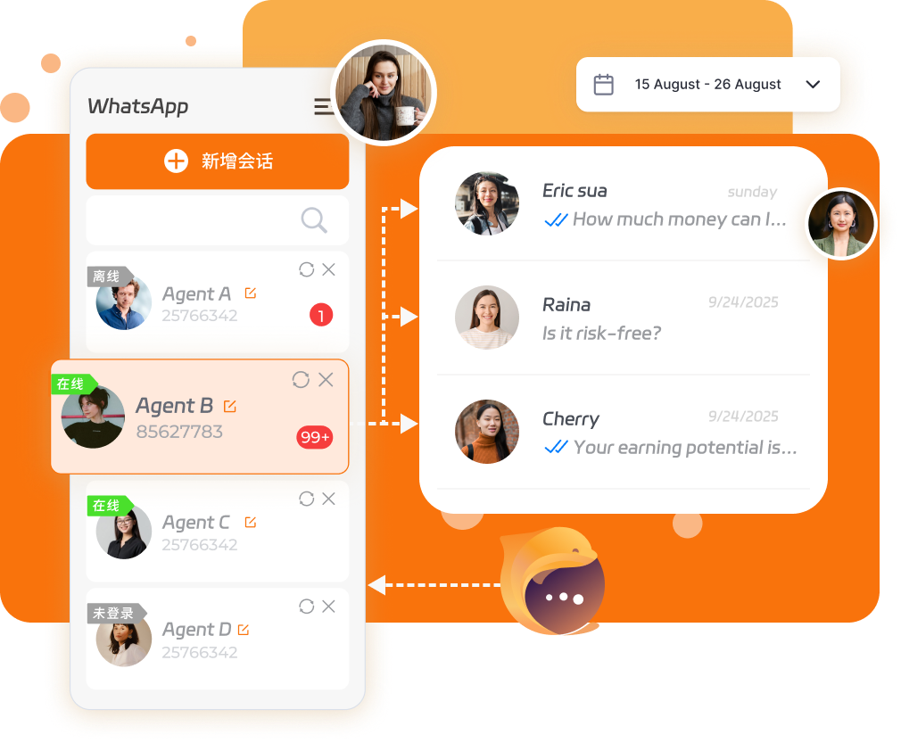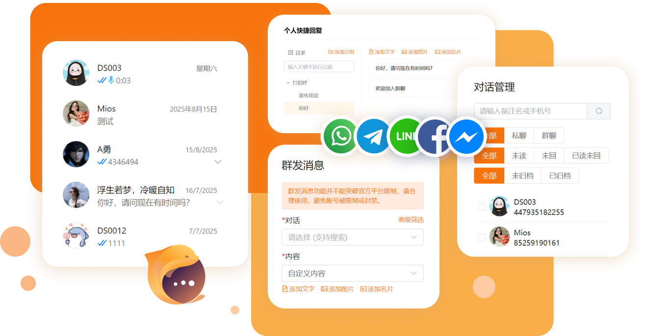 打破语言与平台壁垒,助力企业高效触达全球客户。支持 WhatsApp、LINE、Telegram 等海外主流社媒的多账号聚合管理、双向 200 + 语言实时翻译,集成AI 客户关系管理与风控功能,优化全球客户沟通链路,推动私域全链路增长。