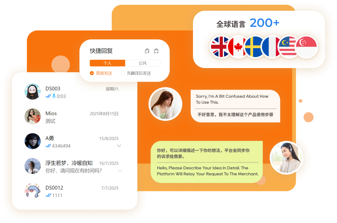 多平台聚合管理与实时翻译,快速响应客户需求,提高沟通效率。